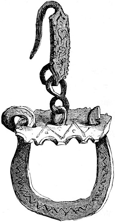 Naturally costume immensely assists a ceremony like this, and should the bride not have old silver enough of her own, everybody is ready to contribute towards the general result, and is only too glad to do anything in his power to add to the brightness of the occasion. In Norway the bride wears a silver crown, which varies a little in form according to date, the most modern crowns branching out all round more than the older ones. The silver crowns are generally made with hinges, four or six in number, so that they may fold up into a small space for carrying in a tine, or box. The oldest forms are silver-gilt; the more recent are partially gilt, some parts being left bright silver. The bride also wears a thick curb chain, with a medal, which is sometimes set in filigree-work; but in the case under notice the medal was one cast with a fine bust of Nelson. Tidemand, the Norwegian genre painter, has portrayed many scenes of the “Bride preparing to start,” “Dressing the Bride,” &c.