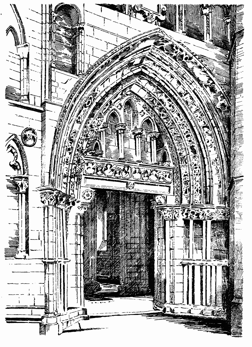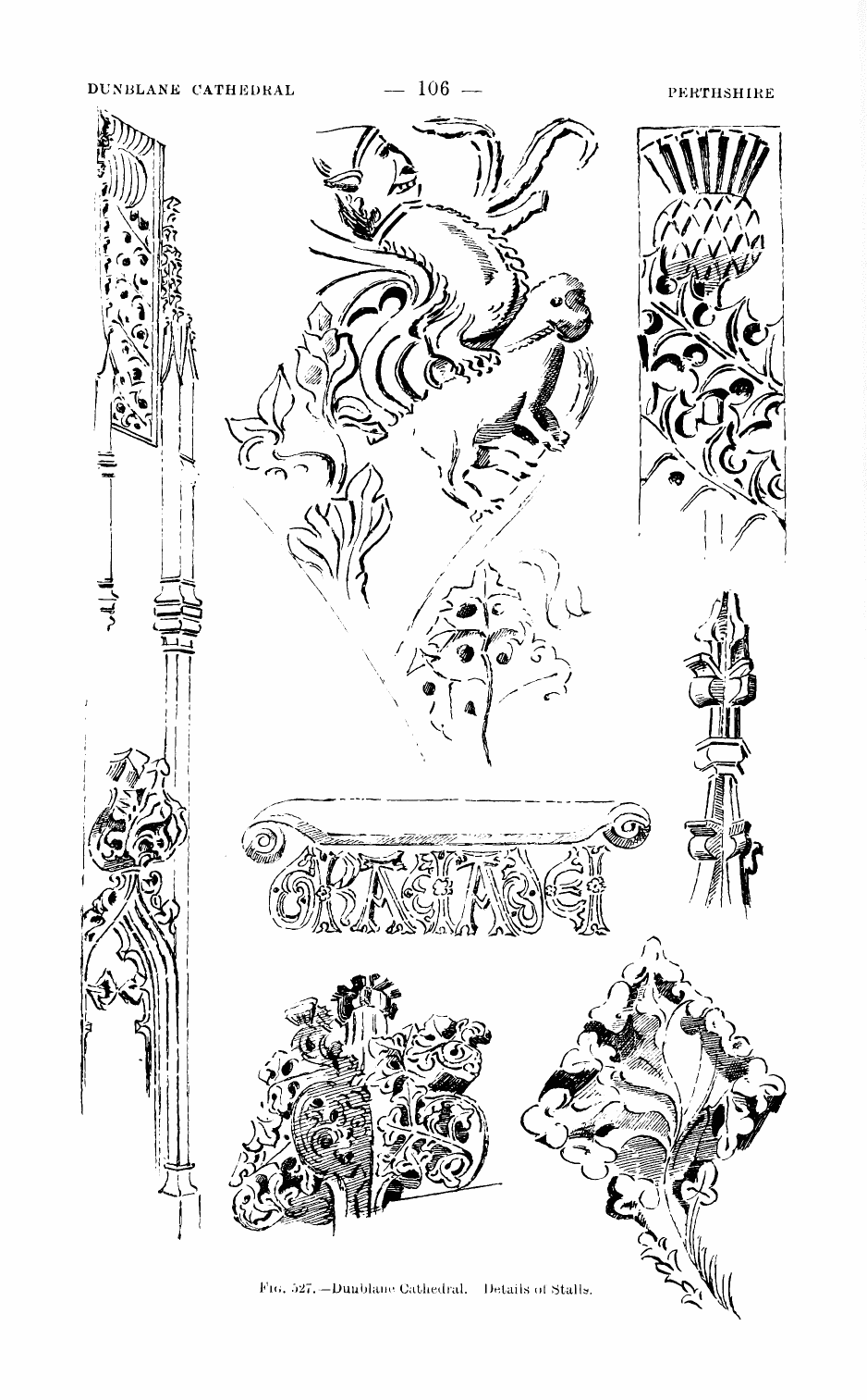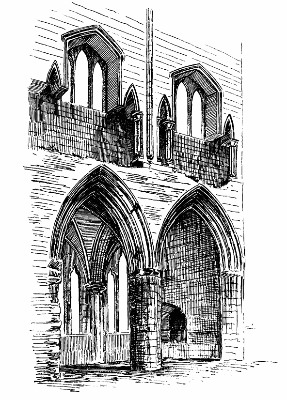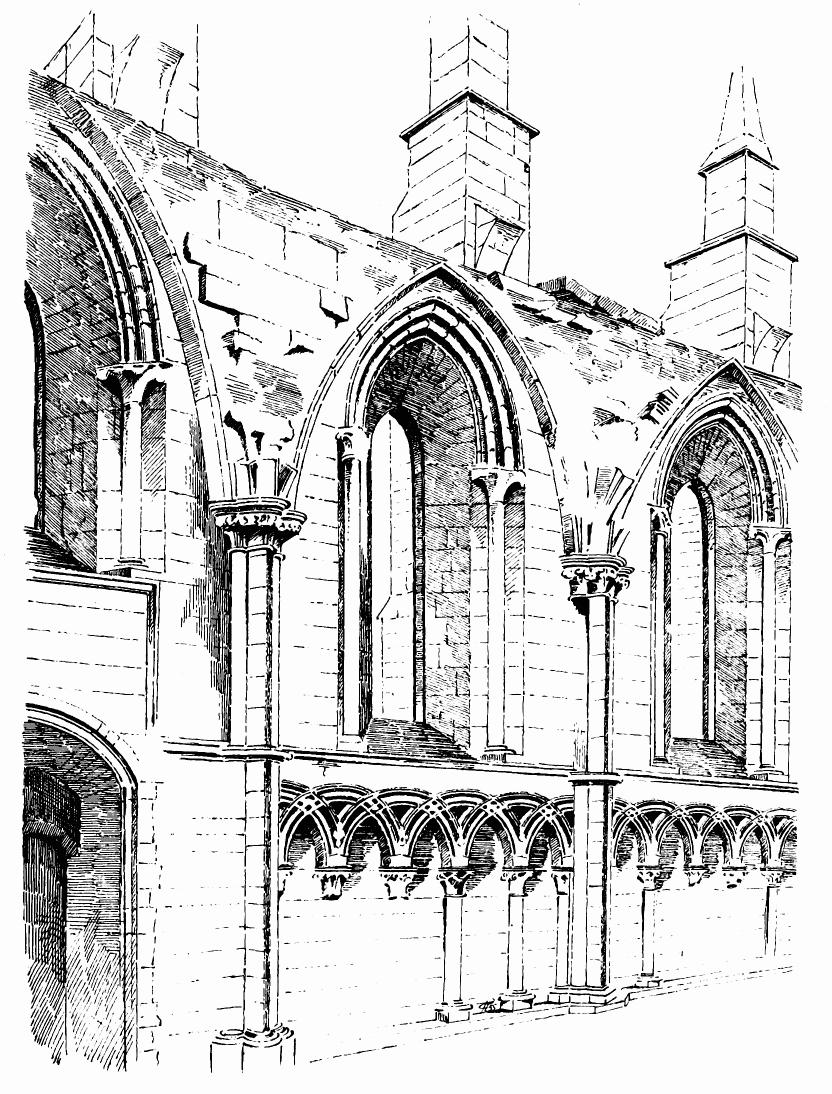 Externally, as well as internally, our Scottish Gothic is somewhat defective in its mode of carrying out the arcuated principles. The wooden roofs so frequently employed really require no buttresses, and, therefore, our buildings are in so far right where in such cases only very slight pilaster-buttresses are used in the triforium, as is the case in Glasgow, Elgin, and Dunblane Cathedrals. In the side aisles, which are vaulted, the buttresses are sometimes heavier, but these features are insignificant as compared with the great flying buttresses and piers of the genuine arcuated or Gothic style of Northern France.
