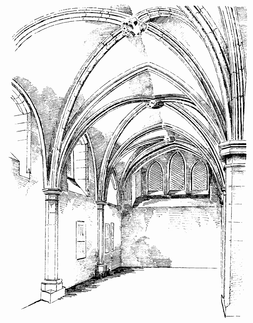In Lincluden College the vaulting shafts, which are heavier than usual, all rest on corbels in the side walls, not far above the floor, so that none of their loads are conveyed to the foundation.