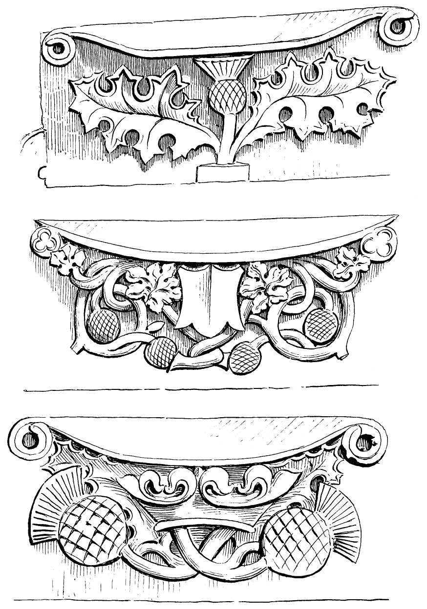[148] Mr. P. M‘Gregor Chalmers, in A Scots Mediæval Architect, p. 26, gives a full account of the sculptured scenes on this screen. He thinks they are the work of John Morow, in the beginning of the sixteenth century; but the work here appears to us to be of earlier date.
