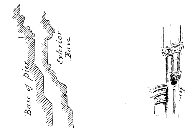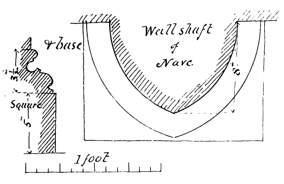 In some buildings, although vaulted, the wall shafts are of such slight dimensions as to be scarcely of any value (even to the eye) in conveying the weight of the vaults to the ground, and these shafts frequently do not descend to the base, or even to the caps of the main piers, but are carried on corbels inserted in the side walls at a considerable height above the caps of the piers. The functional use of the wall shafts is thus disregarded, and they become mere ornaments.