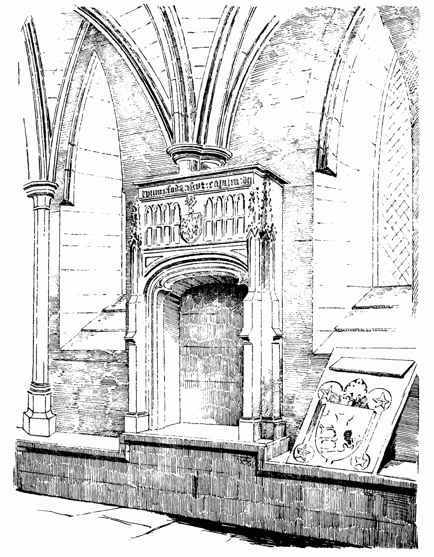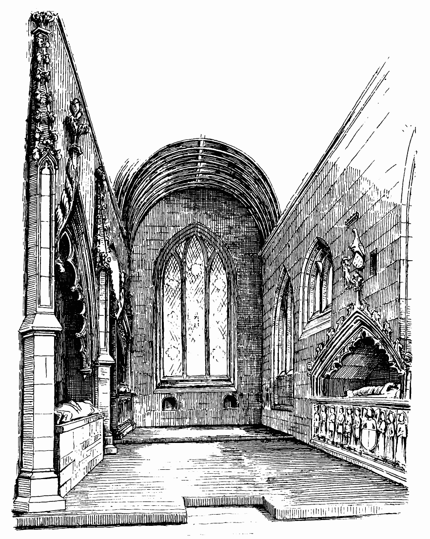 In connection with above, Lord Bute mentions that Bower (p. 366) states that Bishop Henry Wardlaw, who{xv} died April 6th, 1440, “was buried in the Church of St. Andrew, with greater pomp than his predecessors, in the wall between the choir and the Chapel of our Lady,” thus making it evident that the Chapel of our Lady was the chapel on the north side of the choir.