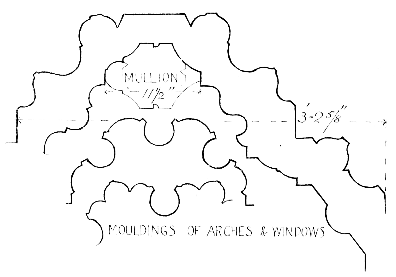 There is, however, at Melrose an entire absence of the heavy blank wall so often introduced over the main arcade, although the absence of any triforium makes the building seem somewhat low and squat. The large amount of solid masonry over the exterior of the great east window of the choir and south window of the transept is likewise a defect. The round abacus is almost always used at Melrose, but the shafts of the piers are simple and distinct, and each member carries a clearly defined series of mouldings.