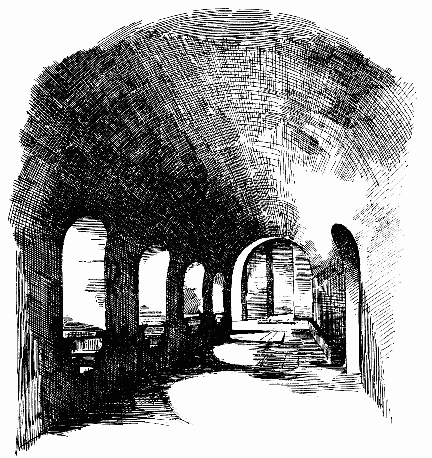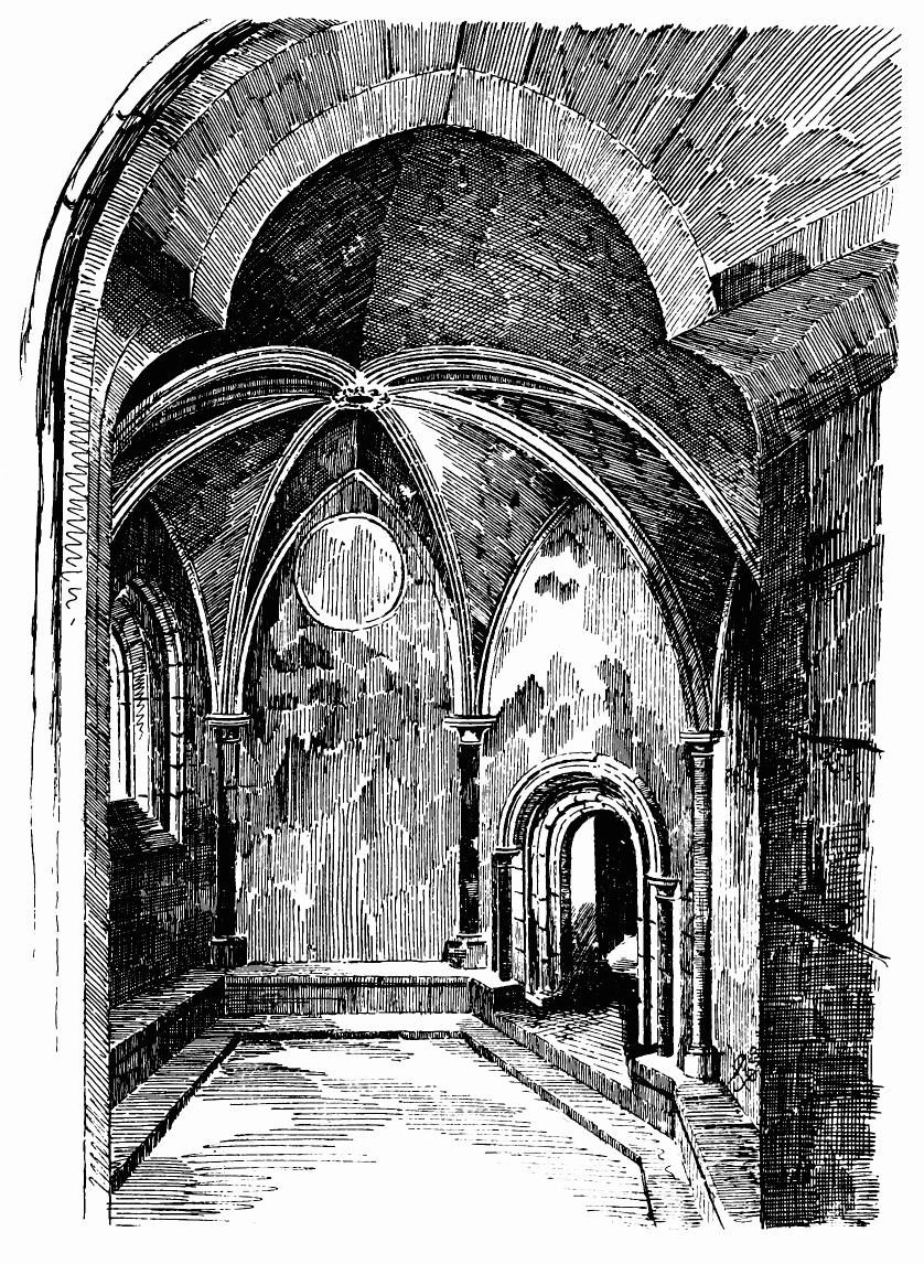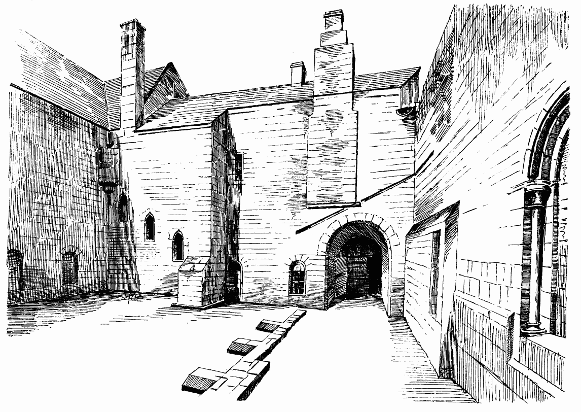“Bower states (pp. 368-369) that Prior John of Haddington, who sat 1263-1304, ‘made the great chamber which is situated in the east part of the monastery, beside the burying-ground;’ that Prior John of Forfar (1313-1321) ‘built the new chamber adjoining the cloister, which the priors have usually had, and which Prior William of Lothian (1340-1354) afterwards enclosed on every side with a very strong wall;’ also, that William of Lothian roofed ‘the eastern chamber’ at great expense.” Lord Bute goes on to say—“My impression is, that the ‘new chamber’ is that afterwards called the senzie chamber; several priors and bishops are mentioned as having died ‘in the prior’s chamber,’ but that Halderston rebuilt the eastern chamber, erecting a fine house there, and also rebuilding some rather decayed old oratory on a finer scale [decentiori]. He was the first who obtained for the priors the use of the pastoral insignia—viz., the mitre, staff, and ring. ‘He strikingly increased for their glory the pomp of divine service, at the celebration of the mass of our lady in her chapel. [Probably it was the custom for the priors to sing or say it on certain days, or every day].... In his days the Lord William Bower, vicar of St. Andrews, completed the altar of [Christ] crucified in the nave of the church, adorned with its permanent [solido] throne and sumptuous figures; and likewise William of Ballochy, his sub-prior, with the desire of the said prior, completed in a very beautiful and comely manner the space of the dormitory at the sides and the other pavements.’”