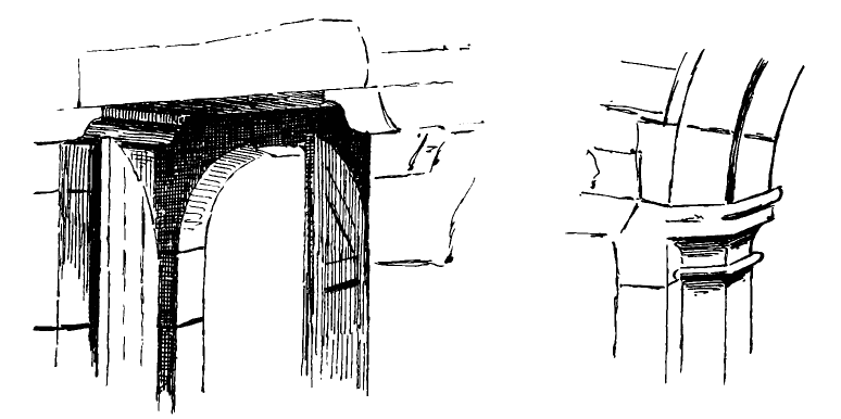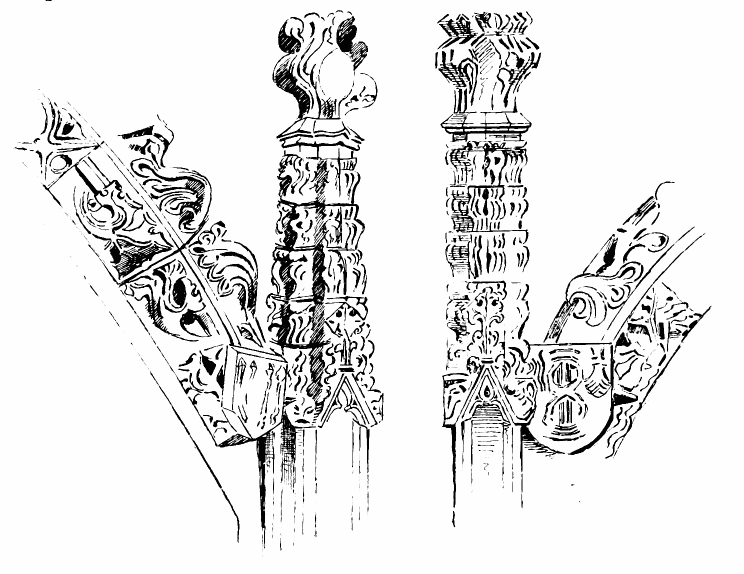 Moulded caps, with round abaci, are usual here, as in England, and have the same defects, both in principle and practice. In the later examples the relation between the shafts or mouldings, which carry the caps, and the arch-mouldings above them is abandoned, and that genuine Gothic principle is entirely ignored.