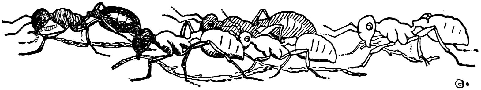 There were the ants, too, always so busy, and in such a hurry. How fast they could run when any one upset their nest; and how funny they looked carrying those queer white bundles.