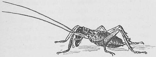 Another insect very commonly found in soft wood tree is called by the natives the "Weta," but by vulgar little boys "The Jimmy Nipper." It is a most repulsive and formidable-looking insect, with a body sometimes two and a half inches long, and is capable of biting hard enough to make blood flow freely. The male [188]and female differ considerably in shape, the male being provided with an immense pair of jaws. They have no wings, and their bodies are covered with a kind of horny shell.
