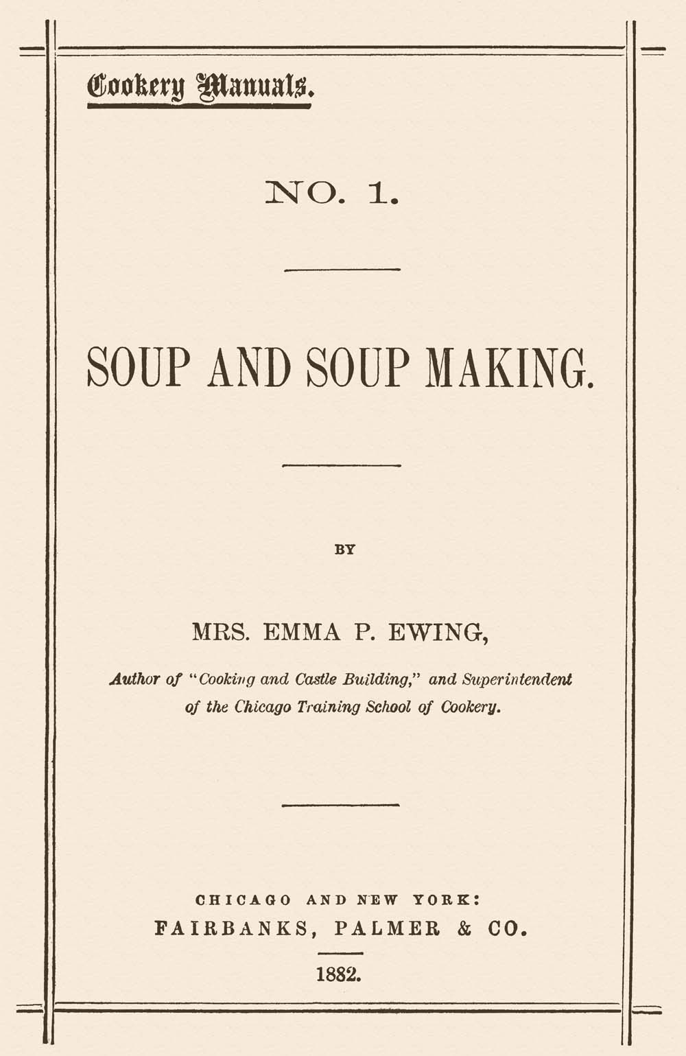 To select and harmonize the materials for a mixed soup is one of the best evidences of culinary capacity; and the cook who can do this successfully,[30] is qualified to prepare a soup of the most complex as well as one of the simplest character, without regard to its name or class.