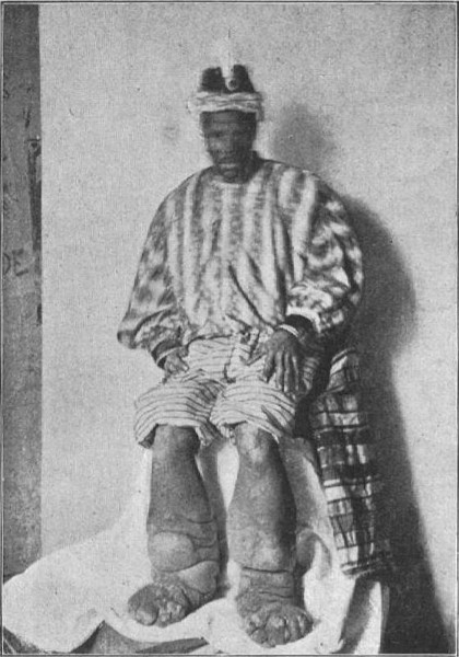 Auch die Augen sind sehr wunderbar und unterscheiden sich von den rothen Augen der anderen Albinos auffallend. Für gewöhnlich sind sie sehr hell und ausdrucksvoll, aber sie wechseln die Farbe je nach dem Lichte, welches auf sie einwirkt. In gewöhnlichem Lichte erscheinen sie gleich den Augen anderer Albinos blassroth, bei gedämpftem Lichte dagegen blaugrau und nach Sonnenuntergang purpurroth; starkes glänzendes Licht verursacht den Augen Schmerzen und vermindert die Sehkraft, während diese bei schwachem Lichte geschärft wird, so dass Unzie noch in der grössten Dunkelheit alle ihn umgebenden Gegenstände deutlich erkennen kann, eine Thatsache, die auf seinen Reisen die grösste Verwunderung hervorrief.