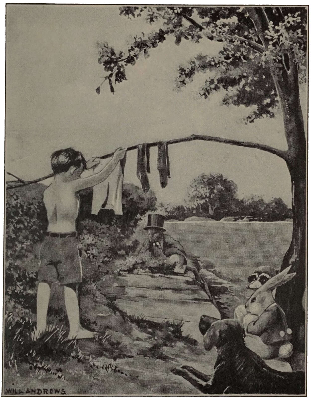 Poor Stripes was shaking to the very end of his long wavy tail. He looked hopefully at Tommy Peele, but Tommy hadn’t even looked up. He was too busy digging for something. So there was nothing for Stripes to do but slink back into his bushes again and cock his eye through a little opening in the leaves to see what he was doing. And Watch didn’t try to follow because he had to dig, too.