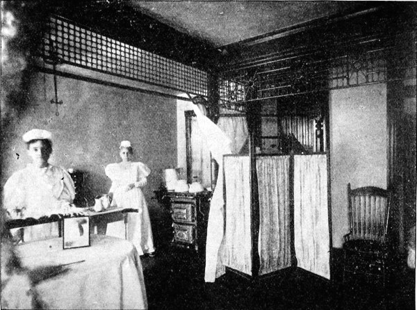 This institution meets a long-felt want, as the colored people are not admitted to the white hospitals in St. Louis. Miss J. E. Valentine, a graduate of the[Pg 547] Freedmen's Hospital Training School, is head nurse. The course in the training school is two years.