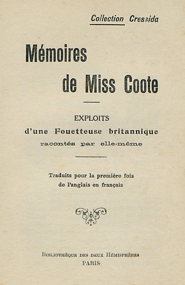 Title: Mémoires de Miss Coote: Exploits d'une fouetteuse britannique racontés par elle-même