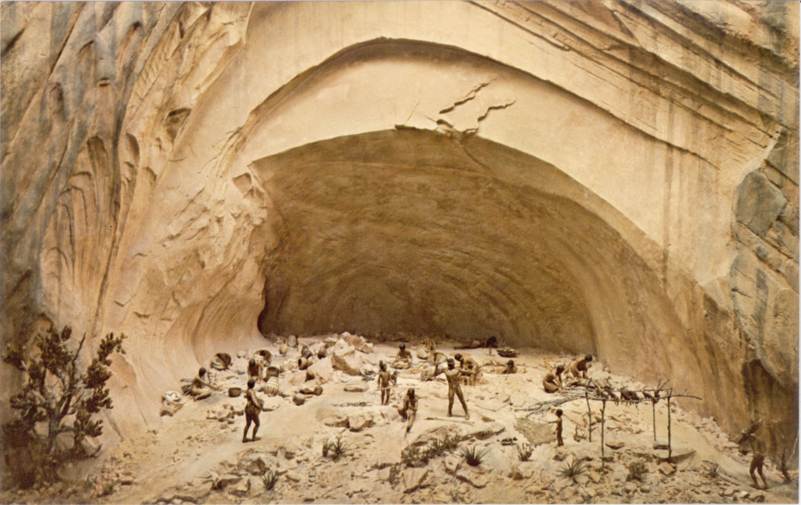 When Step House Cave, three miles west of the park museum, was excavated in 1926, the ruins of three Modified Basketmaker pithouses were found. They were built about 600 A. D.