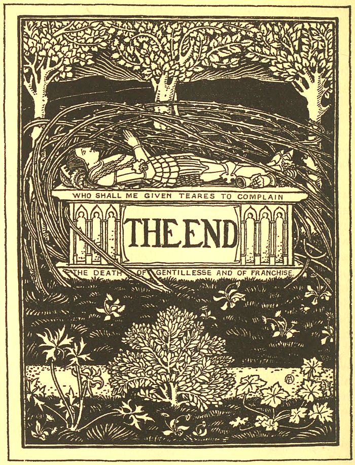 So the lord of the lists stood up and bade the heralds bring the knights before him, but they came back and told him how Porus lay deathlike on the field, yet was he unhurt to all seeming, so Ptolemy spake to Alexander and said, “Sir Alexander, thou hast done thy duly as a true knight, thine adversary is at thy mercy to slay or to spare.” Then Alexander answered, “Were it not for his traitorous dealing to my good steed I would forgive him yet again, nor may I slay him unarmed, but by to-morrow morn I will meet him again on foot, sword to sword, till one of us die.” Then the squires carried Porus away to his tent, and the Indian knights went away from the field shamefast,[178] but the Persians and the Greeks rejoiced in the fame of their lord, and mourned over the death of the good steed Bucephalus. That day Alexander built a tomb for his horse and laid him there, and bitter were the tears he shed, for it seemed to him that the best days of his life were beginning to leave him, and his evil days had begun.