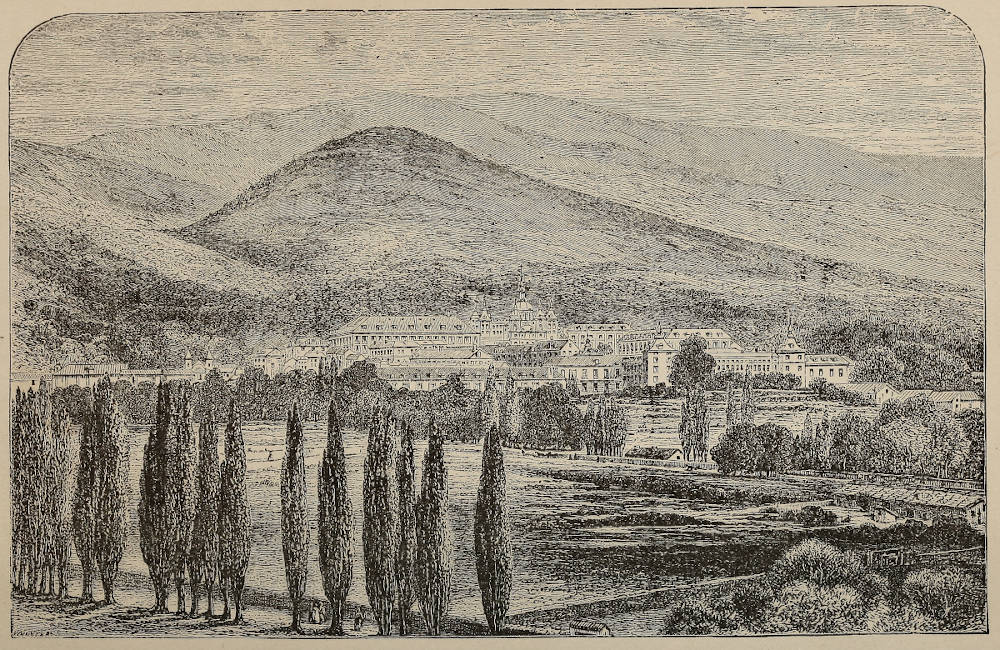 A sleepy Town.—Origin of the Name.—Fusion of the Crowns of Leon and Castile.—The Coffer of the Cid.—Swindling a Jew.—Moorish Lies.—Hotels.—A Change of Base.—The Cathedral.—Statues.—Carvings.—Verdict of Charles V. and Philip II.—Devil beating the Railroad.—Carving by Nicodemus.—Miracles.—Castle.—Engineer hoisted by his own Petard.—Burgos Taverns.—Philip II. His Character.—Conception xiiof a Palace, Monastery, and Tomb.—The Escorial.—Dimensions.—St. Lawrence.—Turning-point of his Life.—Description of the Palace.—Death of Philip II.—Mausoleum.—The Sagrario.—A toe-tal Loss.—Cellini Crucifix.—Library