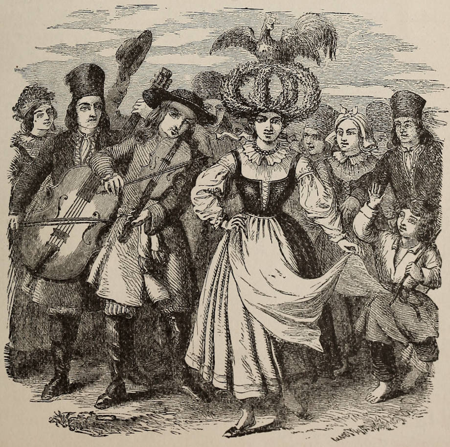 Much more pleasant to look upon, and a memento of a very curious and perhaps a pleasing custom, which, however, is not of the by-gone times, but still common in Scandinavia, at least in the Bergen district, is the crown and girdle and frontlet worn by the bride on the wedding day. But all brides are not allowed to wear such ornaments as these: only brides who have been good girls all the time before. If they have been naughty, they must be married 451without these distinctions, and we may well believe that they are therefore very highly esteemed among young women in the north country. It seems to intimate, also, that it is not altogether a rare thing for a bride to be deprived of the privilege of being thus distinguished, for it is hardly possible that such a state of society can exist anywhere as to have an advertisement made at a wedding that a bride is no better than she should be. But the manners and customs of the world are very queer to the notions of those whose manners and customs are very different, and in no part of domestic life are these habits so monstrously diverse as in the matter of wedding ceremonies.