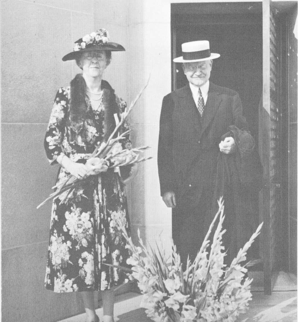 Mrs. Edward A. Deeds and Colonel Deeds at the first regularly scheduled carillon program August 23, 1942.