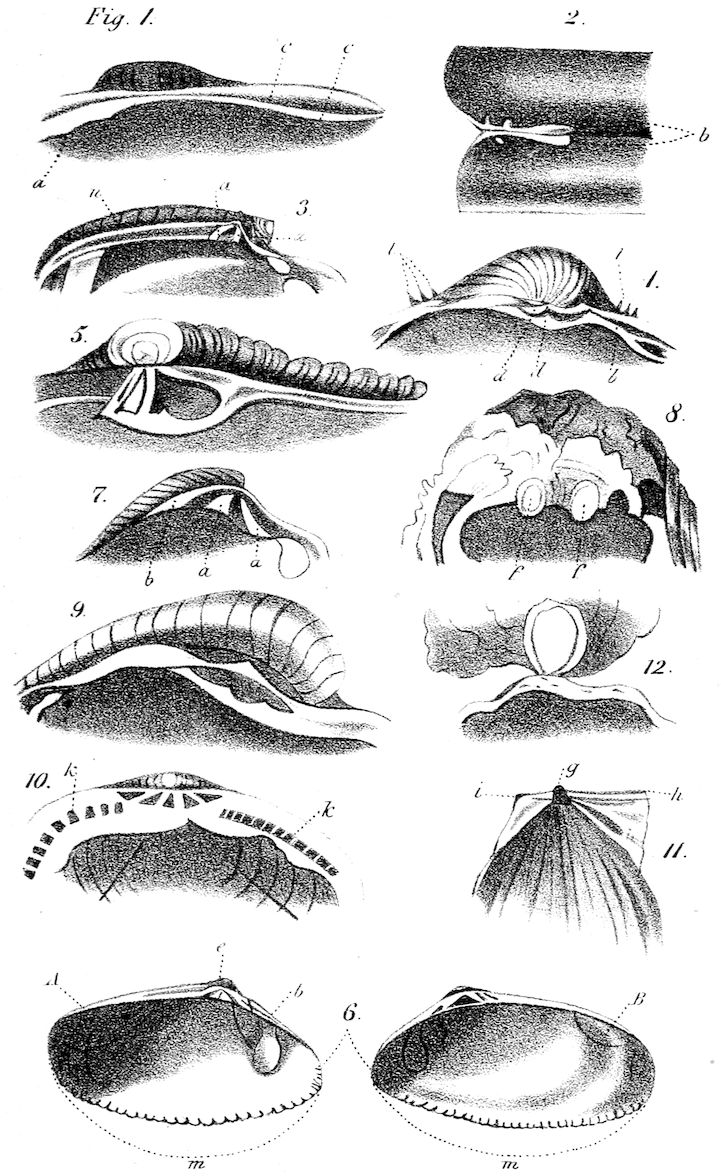 It is on the peculiar construction of the hinge that the generic character of bivalve shells is principally founded, together with the general contour of the shell. Plate II. fig. 1 and 3, q q q.
