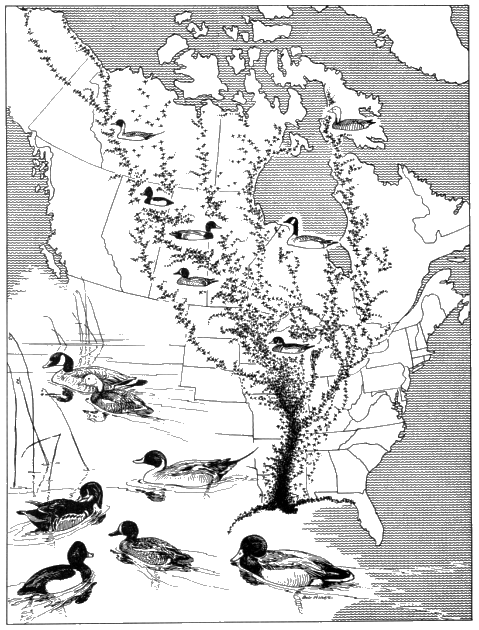 When the birds that have nested in our dooryards and those that have frequented the neighboring woods, hills, and marshes leave us in the fall, the question naturally comes to mind: Where do they go? This, however, is only one small part of the question as we also wonder: Will the same ones return next spring to their former haunts? What dangers will they face on their round-trip flight and while in their winter homes? These and other questions on the migratory habits of most species of Northern Hemisphere birds puzzle all who are interested in them, whether it be the farmer who profits by their tireless warfare against the weed and insect pests of his crops, the bird student who enjoys an abundance and variety of feathered inhabitants about him, or the hunter who wants a continuation from year to year of the sport of wildfowling. Lack of information on the subject may mean the loss of an important resource by unconsciously letting it slip from us, as ignorance might be responsible for inadequate legal protection for such species as might urgently need it. More general knowledge on the subject will aid in the perpetuation of the various migrants, the seasonal habitats of some of which are in grave danger from man's utilization, sometimes unwisely, of the marsh, water and other areas that were formerly homes for birds.