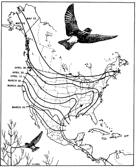 The migrations of birds were probably among the first natural phenomena to attract the attention and intrigue the imagination of man. Recorded observations on the subject date back nearly 3,000 years, to -2- the times of Hesiod, Homer, Herodotus, Aristotle, and others. In the Bible there are several references to the periodic movements of birds, as in the Book of Job (39:26), where the inquiry is made: "Doth the hawk fly by Thy wisdom and stretch her wings toward the south?" Jeremiah (8:7), wrote: "The stork in the heavens knoweth her appointed time; and the turtle [dove], and the crane, and the swallow, observe the time of their coming." And the flight of quail that saved the Israelites from starvation in their wanderings in the wilderness of Sinai is now recognized as a vast movement of migratory quail between their breeding grounds and their winter home in Africa.