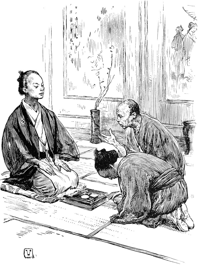 The Daikokuya, you must know, was the chief clothing establishment, or “dry-goods house,” in Kumano, and did a larger business than any other in the town. On arriving there, the master took the boy with him into an inner room, and, telling his wife what had taken place, called the boy to his side. “Tell me, my boy, what is your name?”