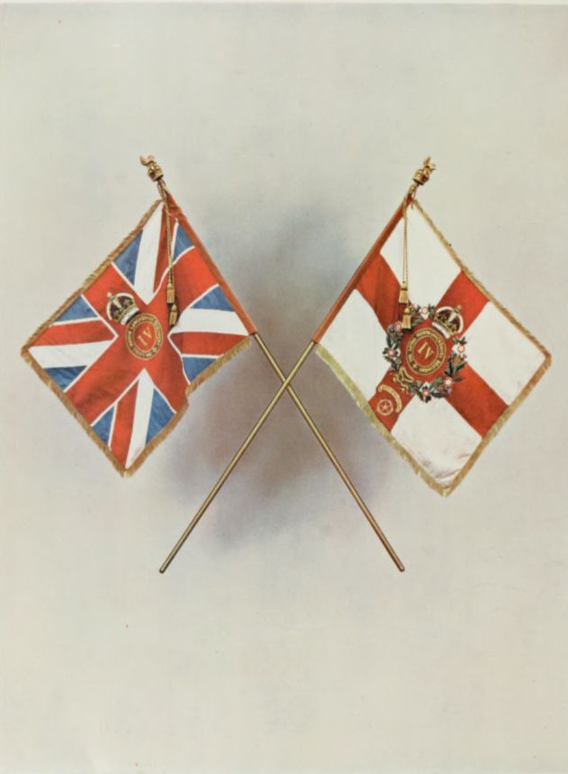 On the 8th August, the Battalion paraded in the Market Square, Preston, and the colours were handed over to the Mayor for safe custody, no one at that time foreseeing that they would remain there for just on five years. A photograph of the colours appears as a frontispiece to this book: in the fulness of time, no doubt, the battle honours earned by the Battalion in the Great War will be embroidered upon them.