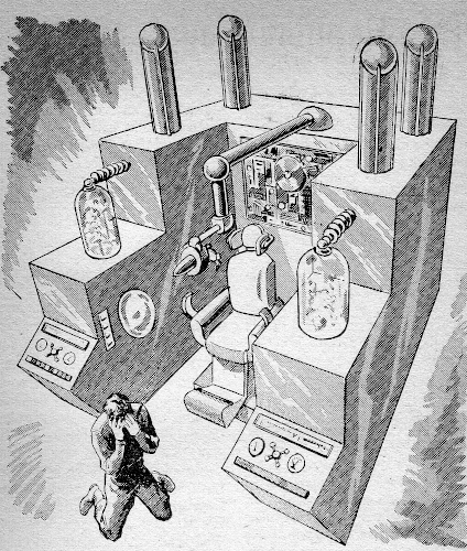 Dan went forward and faced a complex angle of probes and dials, "Is this the machine that does it?" he asked uneasily.