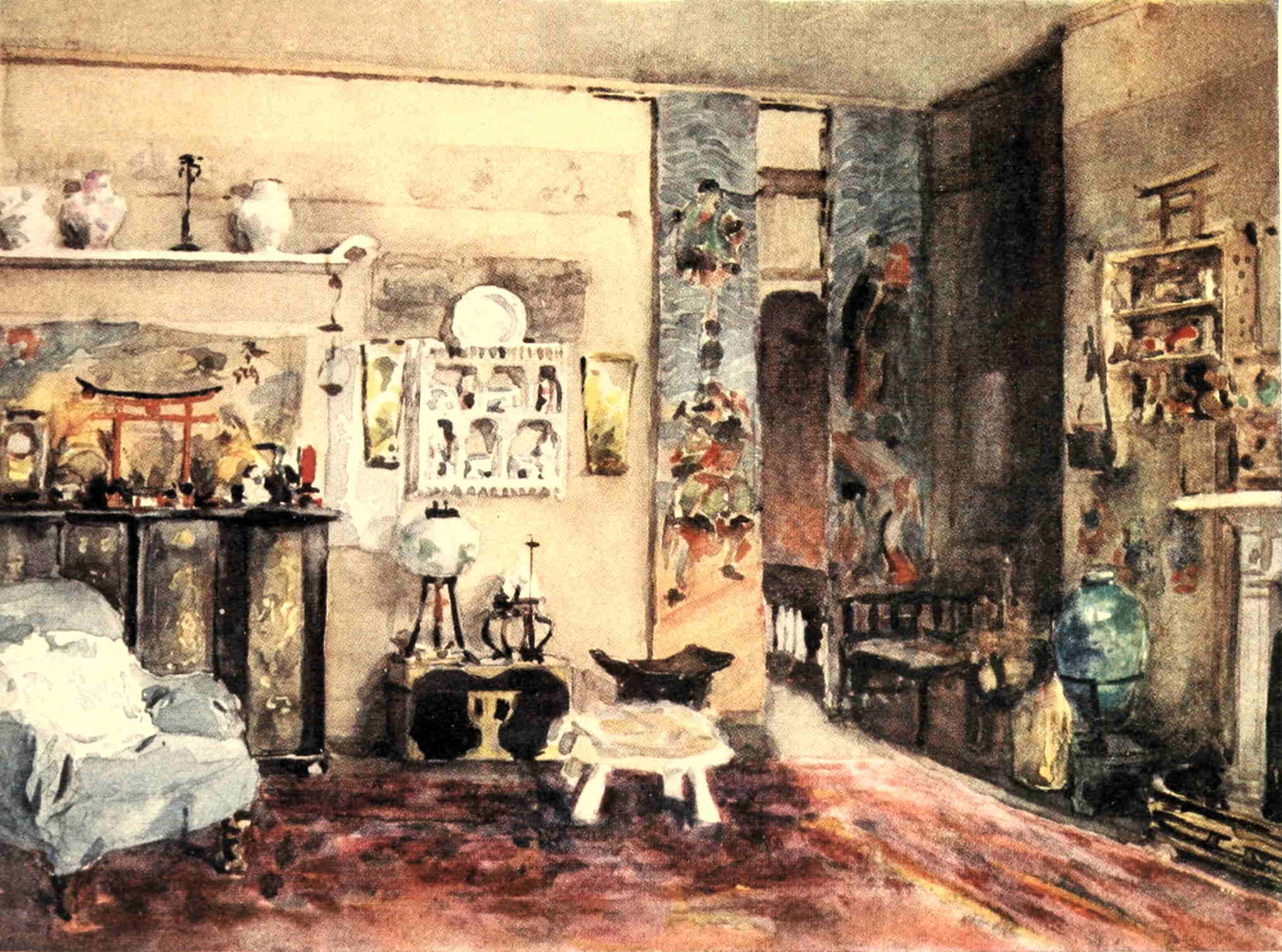 Very famous people used to come sometimes to those ultra-Bohemian gatherings in his studio, including some of the Queens of the music-hall stage.