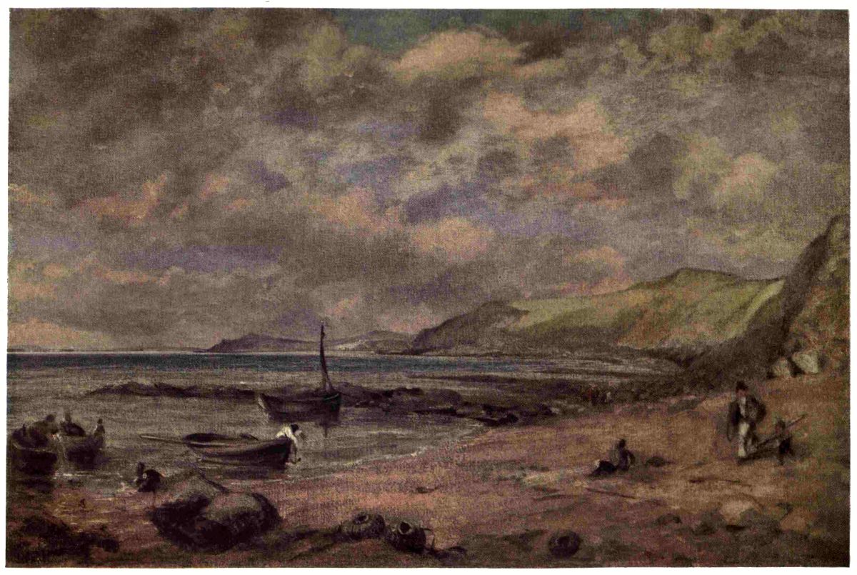 Beside the purely marine painting, the picture that is concerned solely with the sea and ships that sail on it, there is a place for the coast subject. It is true that the coast scene is, more often than not, only a landscape into which the sea is introduced as a subsidiary interest, but under this heading can be included also those views of harbours, estuaries, cliffs, and beaches, which many painters have treated with distinction of style and charm of sentiment. Yet even the coast scene in which the actual nearness of the sea is only suggested owes its character to the sea. Only the sea could have carved those cliffs into their impressive shapes, or could have piled up those masses of huge rocks. Only the winds which blow in from the sea could have moulded that range of sand dunes or could have twisted those stunted trees into their curiously picturesque forms. Only as a protection against the savage strength of the sea has that breakwater been built behind which the fleet of fishing boats lies in shelter. And from the sea come those driving mists and slow-moving banks of fog which throw a veil of mystery over the landscape and give a new aspect to even the most familiar objects. The scent of the sea is in the air, the sound of its waves is unceasing, its influence is all about; the coast is, indeed, but the subject of the sea and owes to it allegiance.