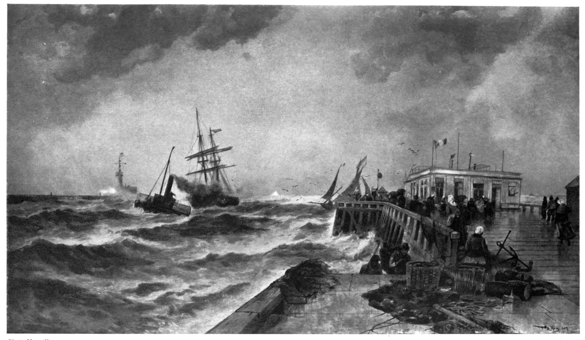 From the middle of the nineteenth century onwards there has been a steadily growing tendency to enlarge the scope of marine painting and to allow to the men who practise it more and more freedom in the assertion of their personal feeling in art matters. That is why so much material of the most varied character is available now for the illustration of this branch of pictorial production, and why so many artists seek in it opportunities for the display of their capacities. They can approach it from the point of view that suits them best, they can interpret what they find there in the way that seems to them most appropriate, and they can, if their study is sincere, get most closely into touch with nature’s secrets.