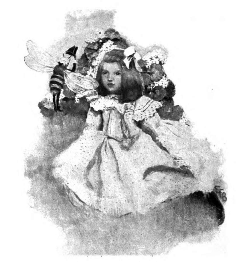 Almost the very first thing, and before Priscilla had time to even think whether she liked him or not, he put his little front foot up to his pert little countenance and wiggled his saucy little fingers at her, in a most objectionable manner. It was exactly for all the world like what the butcher’s boy did when Priscilla offered him a cream chocolate on the first day of April. At least, that’s the way it looked to Priscilla, but, between you and me, I rather suspect the bumble-bee was just wiping off the pollen that had stuck to his lips ever since dinner time. He hadn’t any napkin, you know, so what else could he do?
