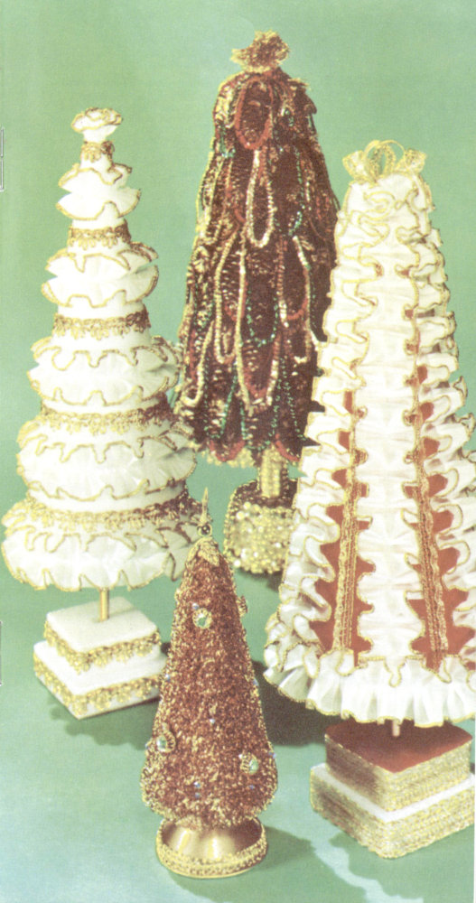5. Cut 44″ flat braid for trunk. Fold and glue as for branches with raw ends at tree base. Glue decorative braid over center of trunk.