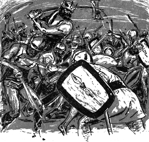 He glanced over and saw Len, the Tower Captain, in tight combat with a gigantic Wild One. The giant was driving Len back toward the sea with sweeping swings of his huge broadsword.