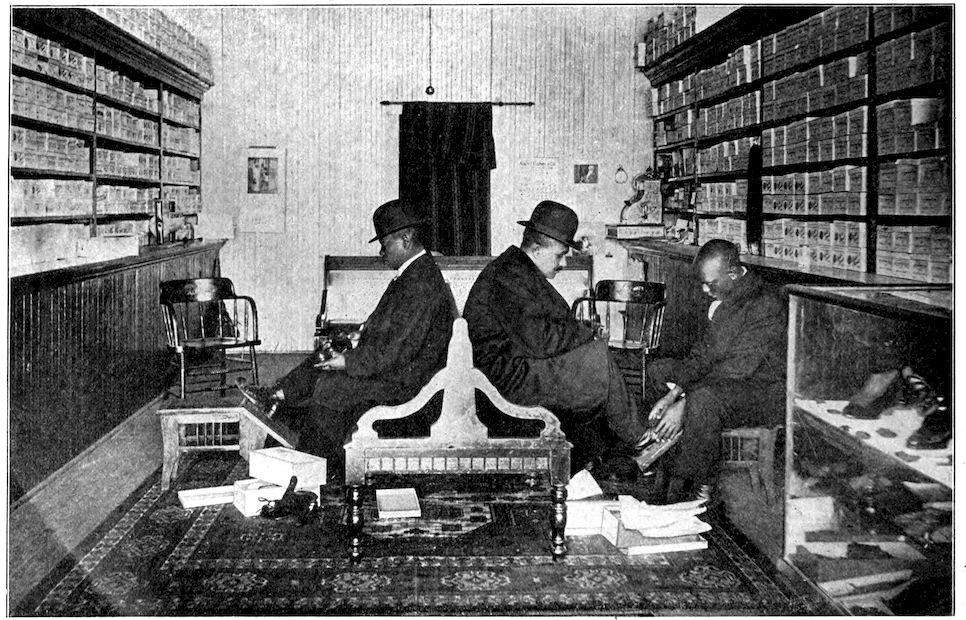 An elegantly appointed Barber Shop owned and patronized exclusively by Colored citizens. Birmingham, Alabama.