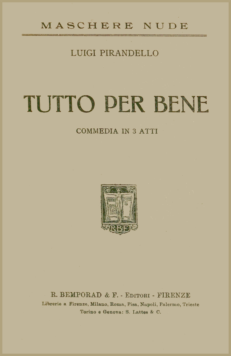 Title: Tutto per bene: Commedia in 3 atti