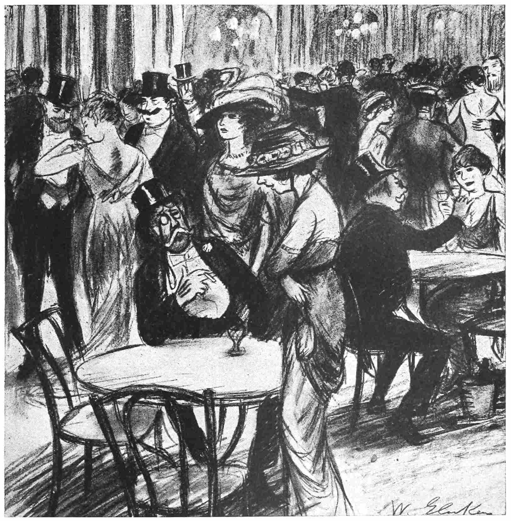 When, somewhat after twelve, I arrived at G.’s Bar I was still a little doleful. Barfleur was there. He had just come in. That indescribable Parisian tension—that sense of life at the topmost level of nervous strength and energy—was filling this little place. The same red-jacketed musicians; the same efficient, inconspicuous, attentive and courteous waiters; Madame G., placid, philosophic, comfy, businesslike and yet motherlike, was going to and fro, pleasingly arrayed, looking no doubt after the interests, woes, and aspirations of her company of very, very bad but beautiful “girls.” The walls were lined with life-loving patrons of from twenty-five to fifty years of age, with their female companions. Barfleur was at his best. He was once more in Paris—his beloved Paris. He beamed on me in a cheerful, patronizing way.