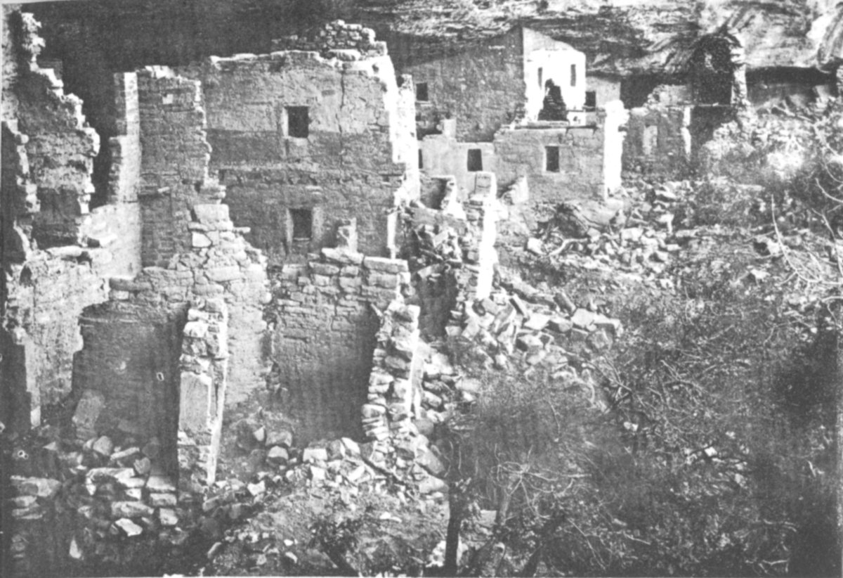 In 1906 Mesa Verde was set aside as a National Park by Act of Congress to protect and preserve these dwellings of the prehistoric Indians. In 1908 Dr. Jesse Walter Fewkes of the Smithsonian Institution excavated Spruce Tree House. He removed the debris of fallen walls and collapsed roofs and stabilized the dwellings more or less as you see them now. It has been necessary, of course, to further stabilize the walls from time to time, but aside from minor repairs and the roofing of the three kivas, the dwelling is original work done by the Indians some 700 to 800 years ago.