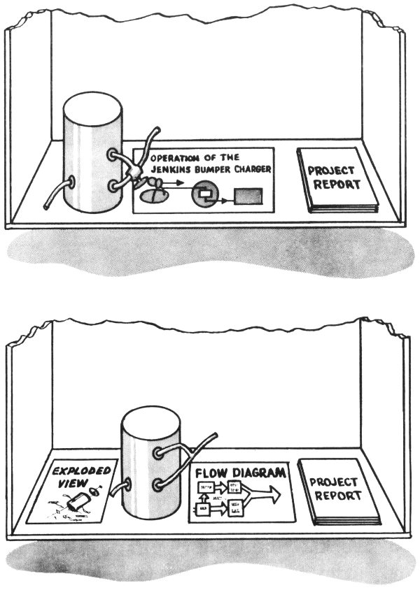 After you have finished your project, documented your work in a project report, planned and listed what must go into the exhibit, and familiarized yourself with the ground rules under which you will compete, you are ready to design your exhibit. The sections which follow suggest guidelines and construction hints on exhibit structure; ways of presenting information (text, photographs, transparencies, line drawings, captions, models, specimens, laboratory equipment, etc.); layout and location of exhibit items, exhibit materials, color, and lighting.