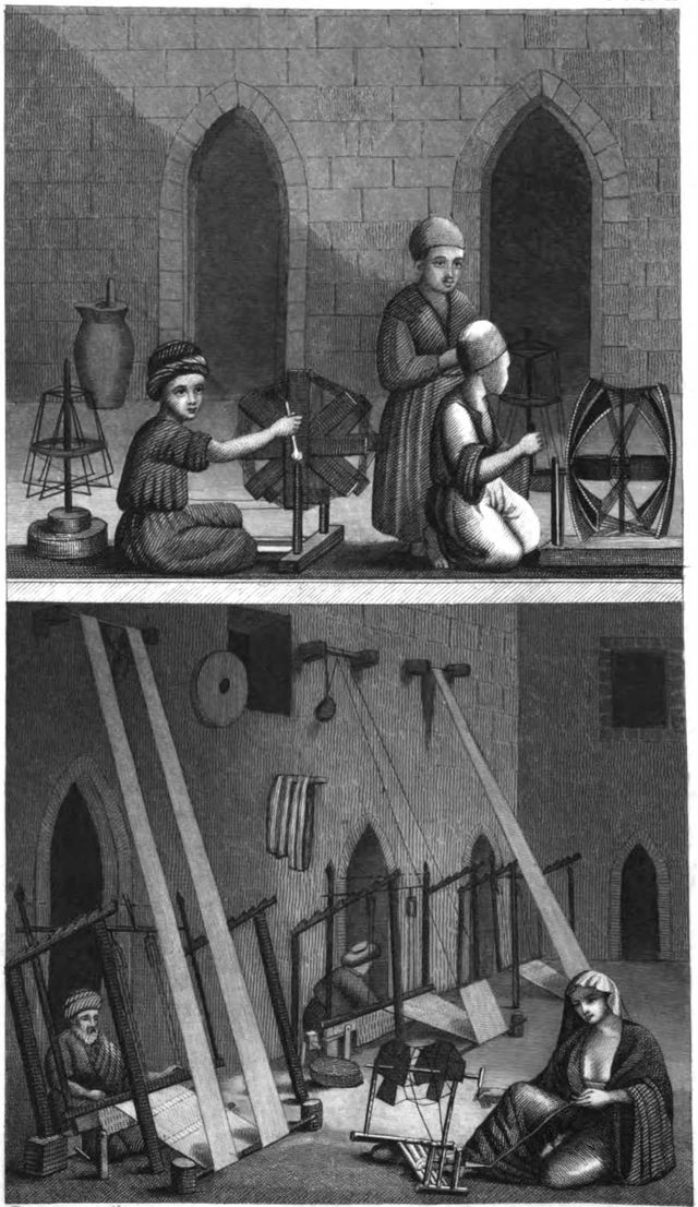 | SPINNING, DYEING, AND WEAVING.—HIGH DEGREE OF EXCELLENCE ATTAINED IN THESE ARTS. | |
