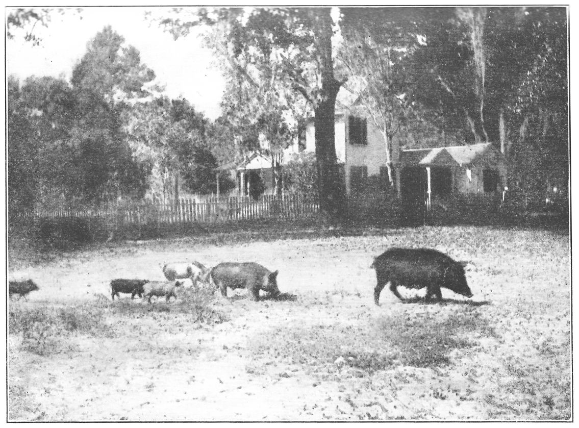One of the eddies in this current was over a sweet potato field just south of the road. The ancient ditty about the grasshopper sitting on the sweet potato vine is true enough these days. The long drought has bred him in numbers, but that day the golden yellow butterflies rather{17} crowded him off. The Florida sweet potato is delicious. There is a nice golden yellow taste to its well-cooked pulp that crosses the word “enough” out of a Northerner’s gastronomic dictionary. I remember as a boy studying history unwillingly, yet reading with pleasure of the part taken by the Southern troops under Marion, “the swamp fox,” in defying the British under Tarleton and thus helping win the war of the Revolution. The legend ran that an embassy of British officers came to Marion’s camp to discuss certain matters with them and found them making a meal of sweet potatoes only. Whereupon the embassy went back and told Tarleton that he could never conquer men who could fight so well on so meager a diet. At the time I sympathized with Marion and his men. Now, having tasted the Southern sweet potato in its native wilds, I sympathize with the British who did not know how well fed their enemies were.