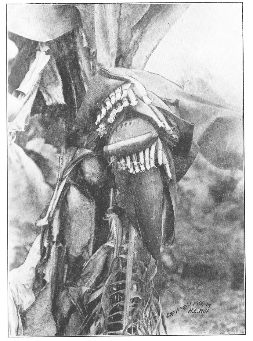 Off shore in the West Indies the froth of the brine seems to play ball with these odors, tossing them on the trade winds leagues to leeward, till{27} one wonders if Columbus might not have hunted the new world by scent. Later in the year, say February or March, this perfume might well be compounded of orange blossoms, but just now, when the oranges, hereabouts at least, are waiting for the winter frosts to be over before they bloom, it is the loquat trees which take up the burden of scent. The loquat is a handsome tree, suggesting in its shape and dark green leaves the horse-chestnut. The blooms are in corymbs, and their cotton-downy, yellowish-white flowers are not so very different to the casual glance from those of the buckeye. With one of those fairy-like surprises that the South constantly gives you the tree however does not produce horse-chestnuts, but an edible, yellow, plum-like fruit, whence its other, common name of Japanese plum.