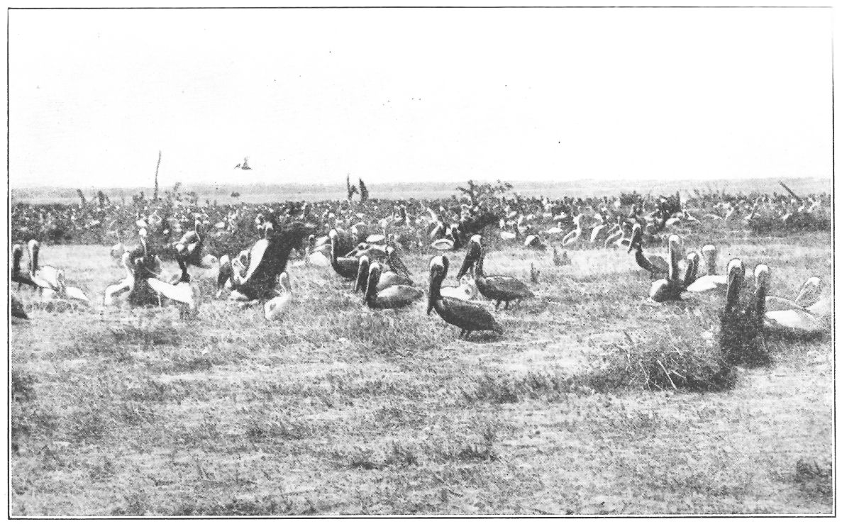 But the pelicans are best seen as they fly in an orderly line from somewhere shoreward, out to the ship inspection. Several flocks of ten or a dozen came alternately flapping and sailing,{7} their wings all beating time with those of the leader as if in a careful drill movement. They sailed over the ship and then settled upon the water, still in an orderly row, and I thought I saw each flock confer after sitting and wag bald heads and long beards as if in approval. As we steamed up the St. Johns we left them there, for the pelican fishes only at sea and disdains the brackish water of the river which flows miles wide from the interior of Florida.