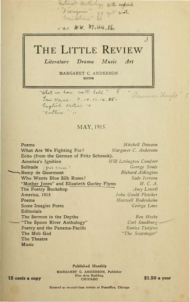 Title: The Little Review, May 1915 (Vol. 2, No. 3)