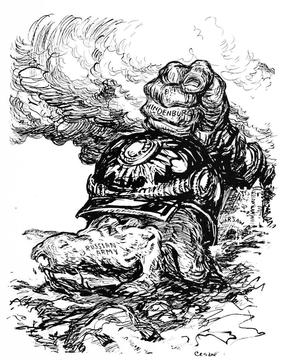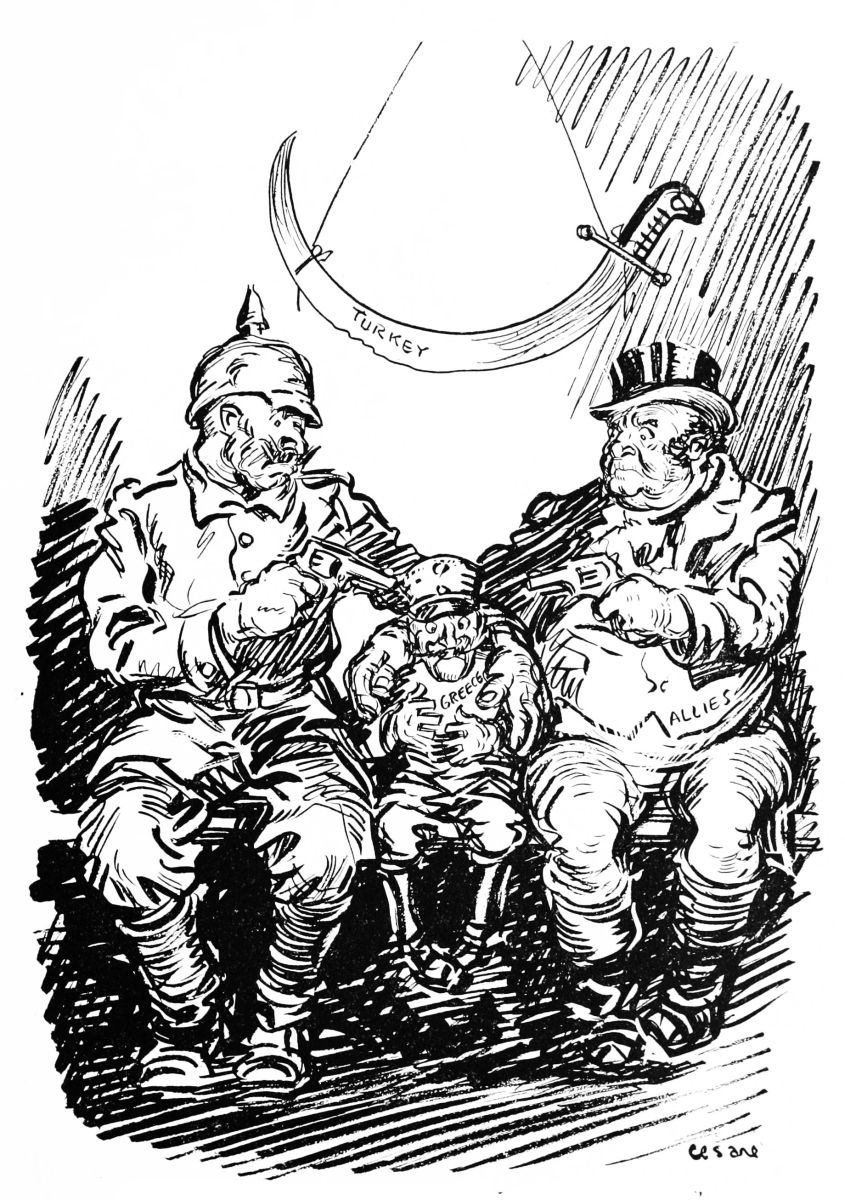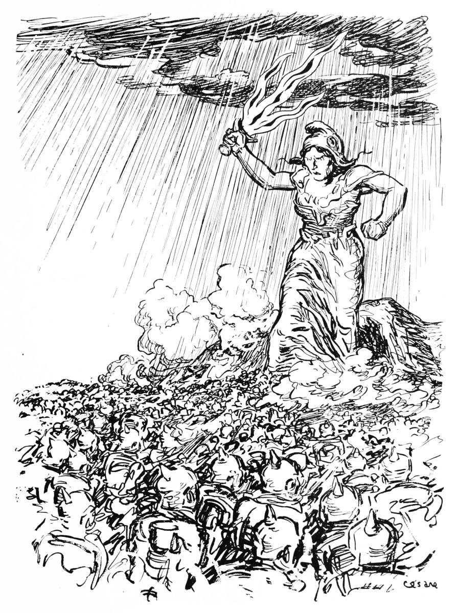 Brilliant and powerful interpretations of our times, by the man whose recent change from the New York Sun to the New York Evening Post gave the latter newspaper opportunity to congratulate itself on the good fortune which had enabled it, when for the first time in its history it decided to add a cartoonist to its regular staff, to obtain the services of the ablest cartoonist in America. Cesare is more than a cartoonist: he is an artist, and is known as such throughout this country, while his work is reprinted in European periodicals more often than that of any other American cartoonist. His greatness lies in his genius as an artist as well as in the strength of the ideas that his drawings express.