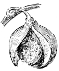 Garlic possesses an onion-like bulb around which smaller bulbs cluster, the whole covered by a membranous outer layer. Each bulb is described as a “clove” of garlic and in flavor is far more[Pg 24] demonstrative than onion. Shallot, on the contrary, is the daintiest of the onion tribe, growing from a cluster of roots and never forming a compact bulb.
