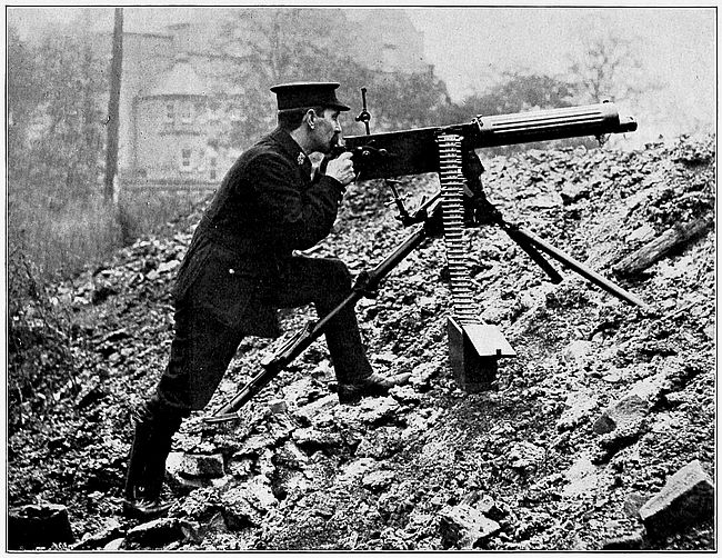 The modern machine gun is essentially an automatic weapon of small-arm calibre, capable of firing from 100 to 600 shots a minute from a light mounting of extreme mobility, and should fulfil the following qualifications: