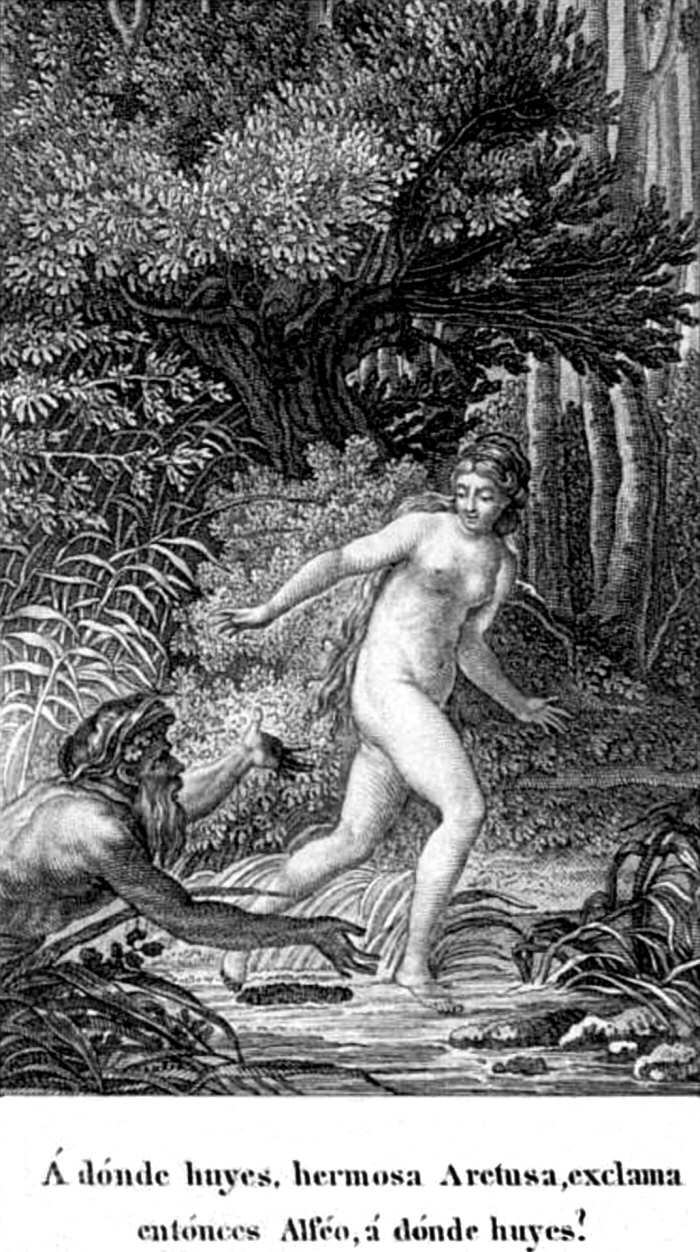 | Estampa 64: | ¿Á dónde huyes, hermosa Aretusa, exclama entonces Alféo, á dónde huyes? |