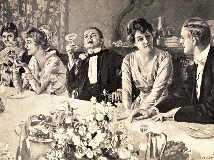 It was three o’clock, but the luncheon the Kinneys were giving at the Country Club had survived the passing of less leisurely patrons and now dominated the house. The negro waiters, having served all the food and drink prescribed, perched on the railing of the veranda outside the dining-room, ready to offer further liquids if they should be demanded. Such demands had not been infrequent during the two hours that had intervened since the party sat down, as a row of empty champagne bottles in the club pantry testified. The negroes watched with discreet grins the antics of a girl of twenty-two who seemed to be the center of interest. She had been entertaining the company with a variety of impersonations of local characters, rising and moving about for the better display of her powers of mimicry. Hand-clapping and cries of “Go on!” followed each of these performances.