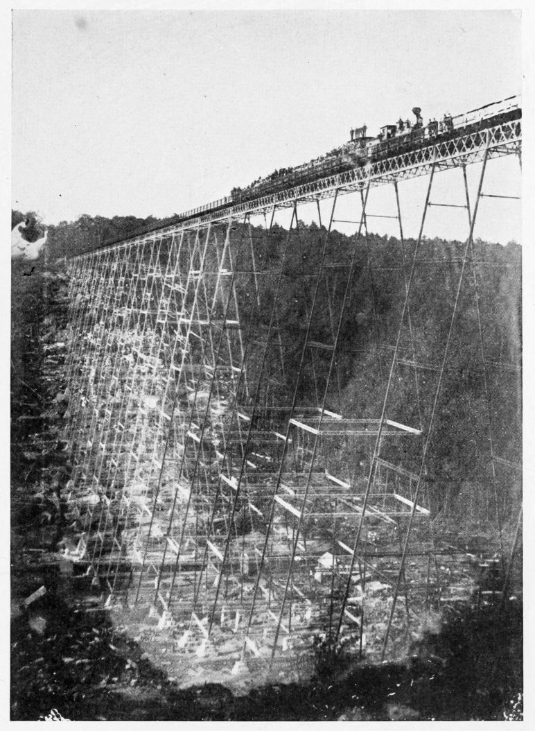 Tunkhannock, county seat; population 1736, first called Putnam, after General Israel Putnam of Revolutionary War; settled, 1790; was incorporated 1841. Lies due north and south, east and west. Courthouse on Courthouse Square has two marble tablets in the corridor, with names of Revolutionary War soldiers buried within the limits of Wyoming County, placed by Tunkhannock Chapter, Daughters of the American Revolution. The Soldiers’ Monument is on the same grounds. Among the churches of different denominations, the Methodist may be mentioned for Gothic architecture. At Factoryville is the Keystone Academy. Crossing Tunkhannock Creek, near Nicholson, is the Tunkhannock Viaduct, said to be the largest concrete bridge in the world, 2375 feet long, 240 feet high, above water level; height from bedrock 300 feet; carries the double tracks of the main line of the Lackawanna Railroad from mountain to mountain across the valley.{463}