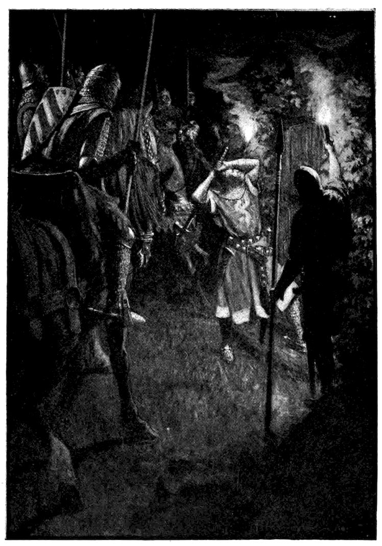 At that moment he caught the sound of approaching men. Indeed, even the dulled ears of the sick man had long since been ware of it, and the noise was what had roused him; but Wulf’s attention had been all on his tasks, and he had no warning until from all the openings about the clearing appeared horsemen and foot-soldiers, while from beyond came the noise of horses and armor and of men’s voices.